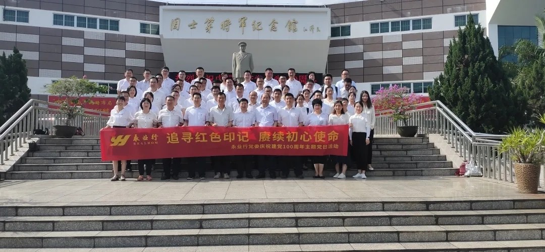 永业行党委组织开展“追寻红色印记 赓续初心使命”主题党日活动 2021-06-28 为纪念建党100周年,重温峥嵘岁月,传承红色基因,6月28日,永业行党委委员、副总裁雷小军、吴学锋,党委委员、助理总裁雷小明,党委委员刘亚玲、孙宇,党员及管理层代表赴海南省琼海市周士第将军纪念馆开展“追寻红色印记 赓续初心使命”主题党日活动。 周士第将军是共和国开国上将,生前为中华民族独立与解放、为中国人民解放军的建设事业、为中国特色社会主义建设贡献了光荣的一生。在纪念馆内,大家参观了周士第将军参加革命活动的珍贵照片、文献资料和大量文物,详细了解周士第将军戎马一生的丰功伟绩,再一次接受了红色精神的洗礼。 在革命先烈的注视下,所有党员干部重温入党誓词,用嘹亮的 MORE