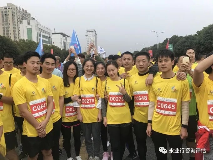 永业行咸宁分部组织员工参加马拉松比赛 2017-11-11 11月11日,2017年咸宁国际温泉马拉松开赛。为丰富员工业余文化生活,增强团队合作,展现公司员工奋发向上、努力拼搏的精神面貌,永业行咸宁分部14名员工组成跑团参加了本项赛事。 本次马拉松比赛按照国家  A  类马拉松赛事标准进行  ,  分为全程马拉松(42.195公里)、半程马拉松(21.0975公里)、微型马拉松(6公里)三个级别。永业行咸宁分部参加半程马拉松的李松涛、蒋杰、彭栋、陈传锐等7名队员,自人民广场起点出发,一路经过咸宁大道、东外环公路、旗鼓大道、金桂路、银桂路,行程21.0975公里,顺利到达位于双鹤路的终点。比赛 MORE